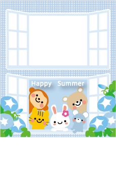 写真を入れて作成できるフォト フレーム暑中見舞いデザインテンプレートが無料でダウンロード出来ます。暑中見舞い(残暑見舞い)印刷用素材(郵便葉書)としてのご使用は個人様はもちろん法人・商用・ビジネス・仕事用でも無料でご使用頂けます。ご使用のさいは利用規約を読まれてご使用くださいませ。暑中見舞い印刷用テンプレートは各画像の上でクリック【 別枠で開いた大きな画像 】をダウンロードしてご使用ください。